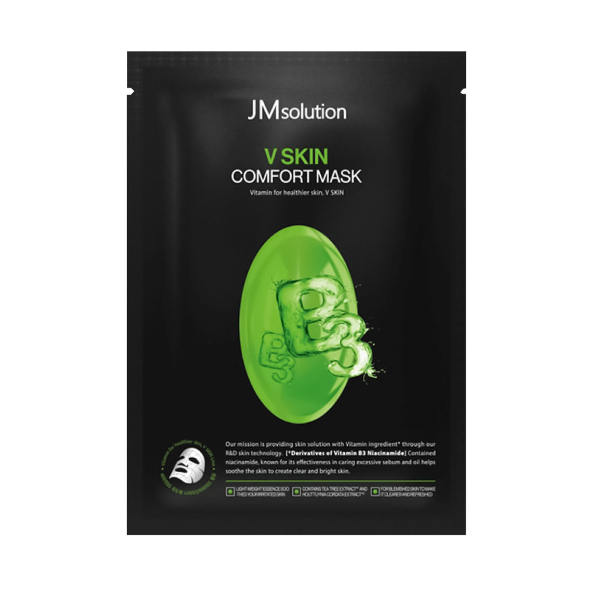 Тканевая маска для сияния кожи с витамином B3 JMsolution V Skin Comfort Mask мягко осветляет общий тон кожи, борется с тусклостью и покраснениями. Интенсивно увлажняет, тонизирует, освежает и возвращает здоровое сияние. Отлично подходит в качестве средства для экспресс-восстановления.